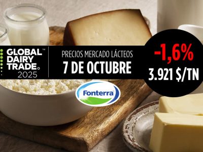 En la sesión 389 del 7 de octubre, el Global Dairy Trade registra una bajada del -1,6% en su índice...