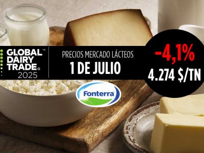En la sesión 393 del 2 de diciembre, el Global Dairy Trade registra una bajada del -4,3% en su índice...