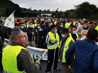 Más de 500 tractores, respaldados por 4.000 productores de Sevilla, cortaron el viernes 4 de febrero la AP-4 durante tres...