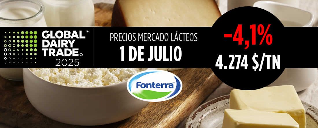 Fonterra 1 de Julio de 2025, bajada del -4,1% en el índice del precio de los lácteos