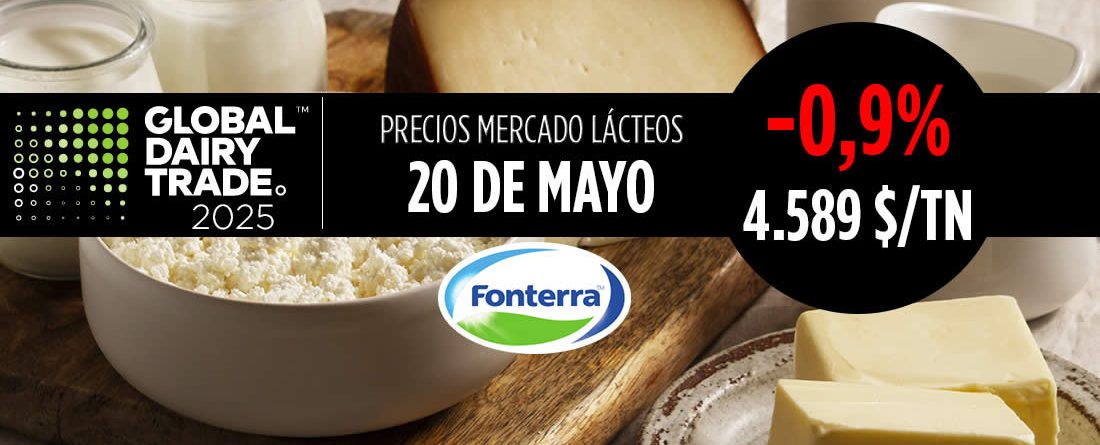 Fonterra 20 de Mayo de 2025, bajada del -0,9% en el índice del precio de los lácteos