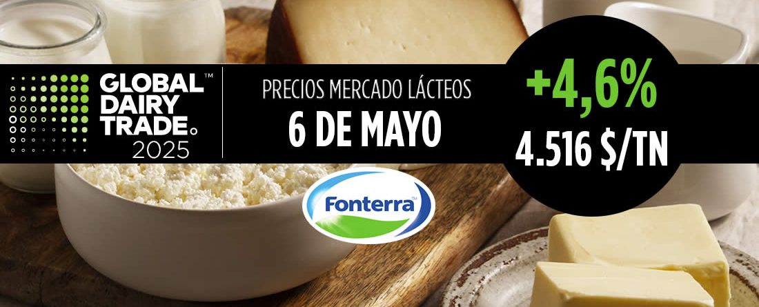 Fonterra 6 de Mayo de 2025, subida del +4,6% en el índice del precio de los lácteos