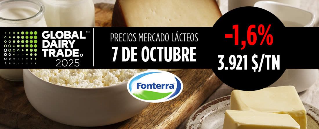 Fonterra 7 de Octubre de 2025, bajada del -1,6% en el índice del precio de los lácteos