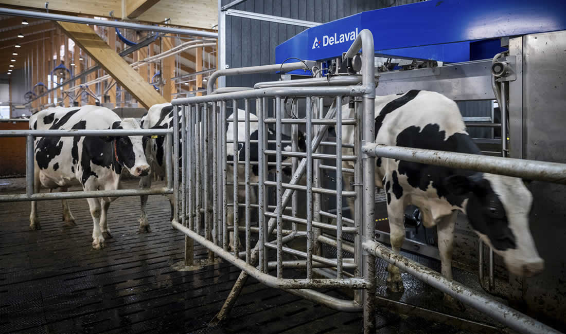 Equipado con las últimas tecnologías digitales de DeLaval, incluyendo modelos de riesgo de enfermedades basados en inteligencia artificial, contadores automáticos de células somáticas, herramientas de análisis del comportamiento y cepillos rotativos para vacas, etc.