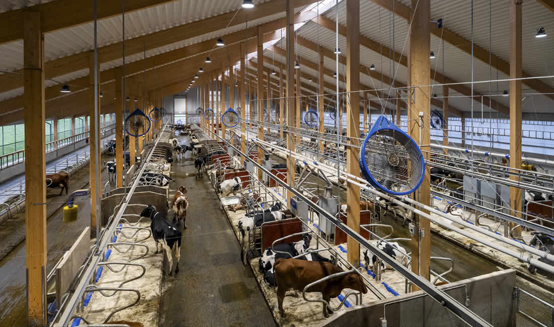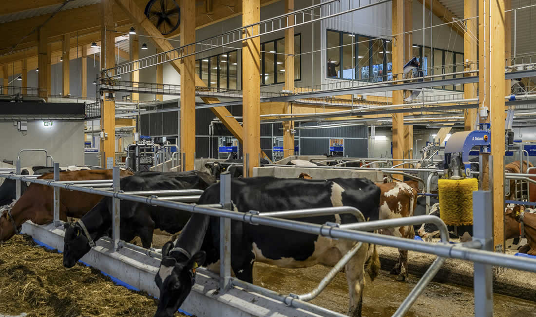 Nuevo establo VMS con capacidad para 350 vacas, que también sirve como centro de visitantes.
