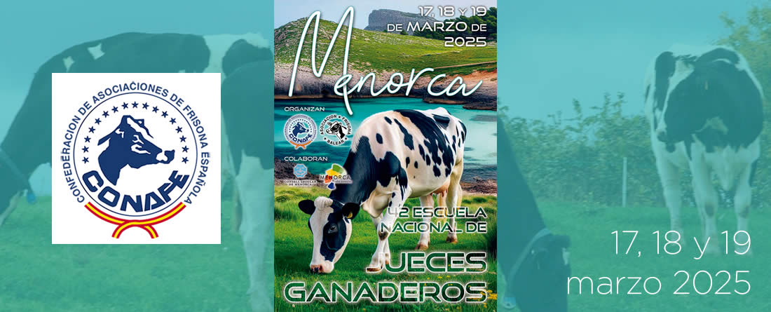La 42ª Escuela Nacional de Jueces Ganaderos de raza frisona se celebrará en Menorca los días 17, 18 y 19 de marzo de 2025, organizada por CONAFE en colaboración con la Asociación Frisona Balear (AFB), y con la participación de ganaderías locales.