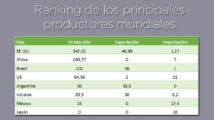 Como siguientes productores mundiales tenemos Argentina y Ucrania, con especial relevancia por su capacidad exportadora.