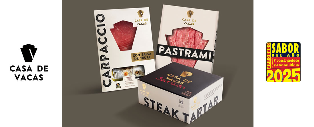 Tres productos de Casa de Vacas, marca de carne Premium de Encarna Group, han recibido el galardón de “Sabor del año 2025” por los consumidores que reconocen el trabajo de esta firma, basado en la tradición, el bienestar animal y el cuidado del entorno. Son el Carpaccio con salsa de trufa, el Pastrami y su Steak Tartar marinado, que ha recibido este galardón por segundo año consecutivo. Todos se pueden adquirir en supermercados e hipermercados de cercanía.